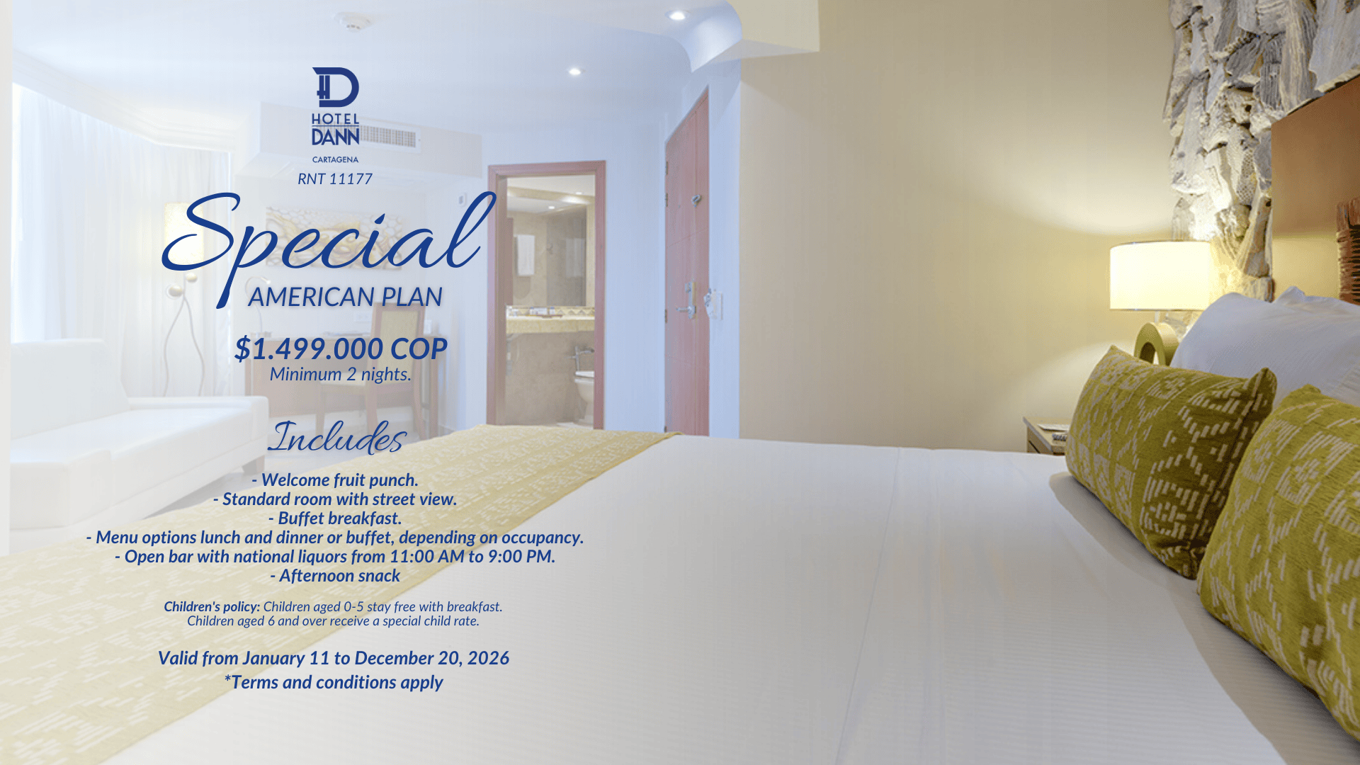 The Dann Cartagena Hotel has 105 comfortable rooms recently remodeled with spaces between 20 and 110 m², some with sea views or city views, specially designed to make your stay an unforgettable experience.